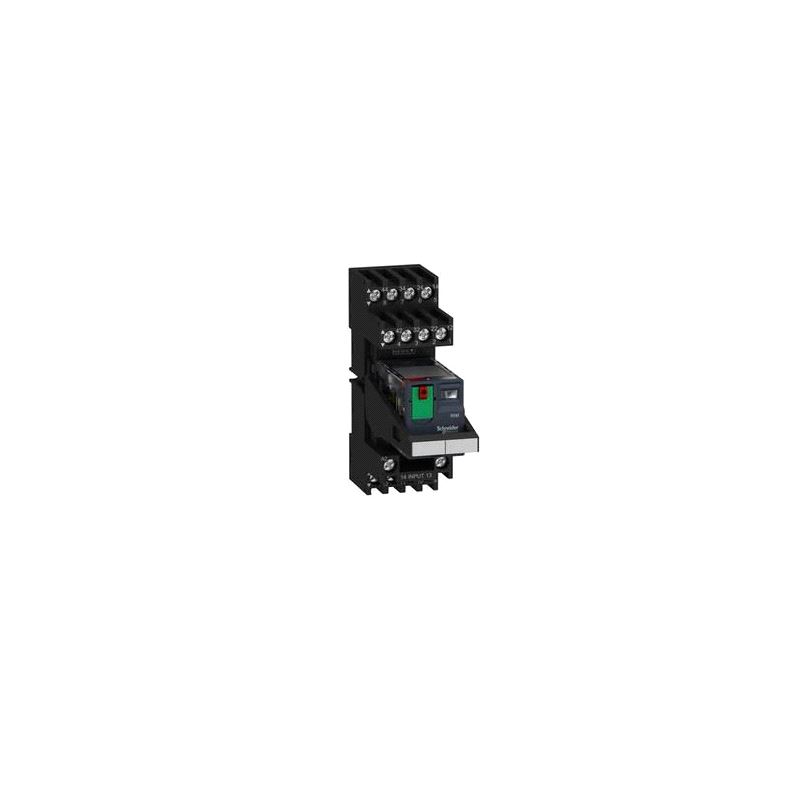 SchneiderRXM pluggrelé i sokkel 4 C/O 6A m/test+LED 24VDC