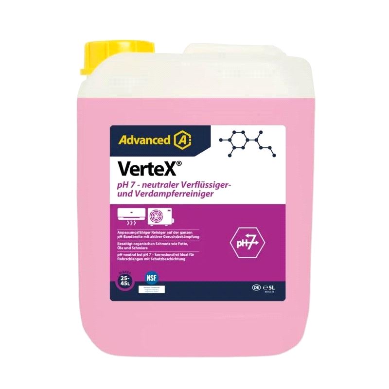 VerteX® vedlikeholder klimaanlegg og kjølesystemer på hele pH-skalaen. Takket være sin unike formel, er VerteX® i stand til å endre sin egen pH-verdi fra pH 7,6 til å være enten mer sur eller mer alkalisk avhengig av typen forurensning.